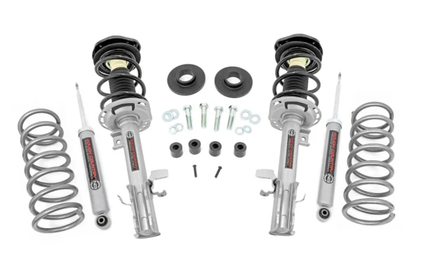 Diseño y construcción innovadores. Este kit fácil de instalar ofrece una mayor distancia al suelo y nivela el vehículo de adelante hacia atrás para lograr una apariencia más agresiva. El kit de elevación de 2 pulgadas de Rough Country incluye puntales N3 con válvulas específicas para el Maverick. También se incluyen amortiguadores N3, resortes helicoidales traseros y todo el hardware necesario para la instalación.
