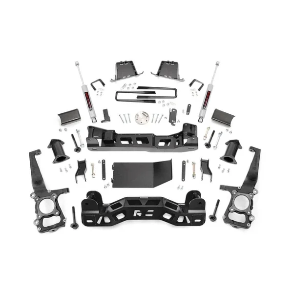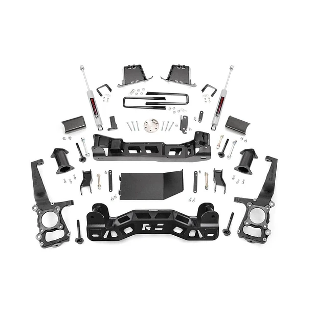 ¡Transforma tu Ford F-150 con una nueva postura audaz y un rendimiento inigualable! El elevador de suspensión de 4 pulgadas de Rough Country le da a su camión el aspecto agresivo y la capacidad todoterreno que se merece. Este kit todo incluido incluye todo lo que necesita para llevar su F-150 desde el pavimento hasta los senderos.
